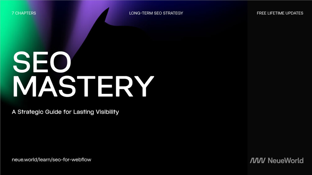 Decode the 'simple' art of SEO with our Mastery eBook. Seven chapters of insights, from 'why isn't my site ranking?' to 'advanced Webflow voodoo'. Perfect for those who enjoy long walks through Google's ever-shifting goalposts. Or visit: neue.world/learn